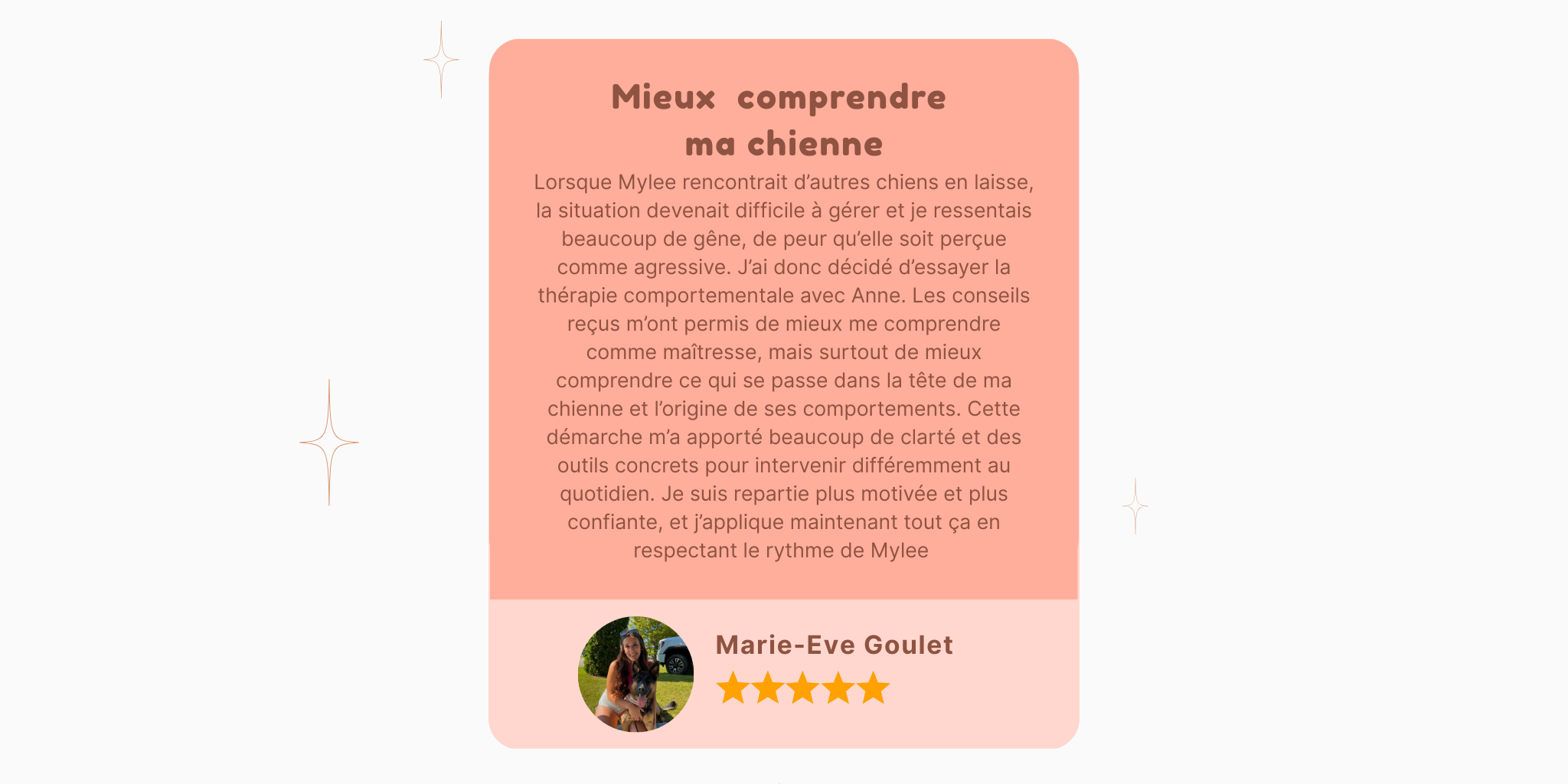 🐕 Ici, on s’attaque à la source du comportement, pas seulement aux effets. Peur, anxiété, réactivité, agressivité, surstimulation… chaque situation est analysée en profondeur afin de te proposer une stratégie sur mesure.